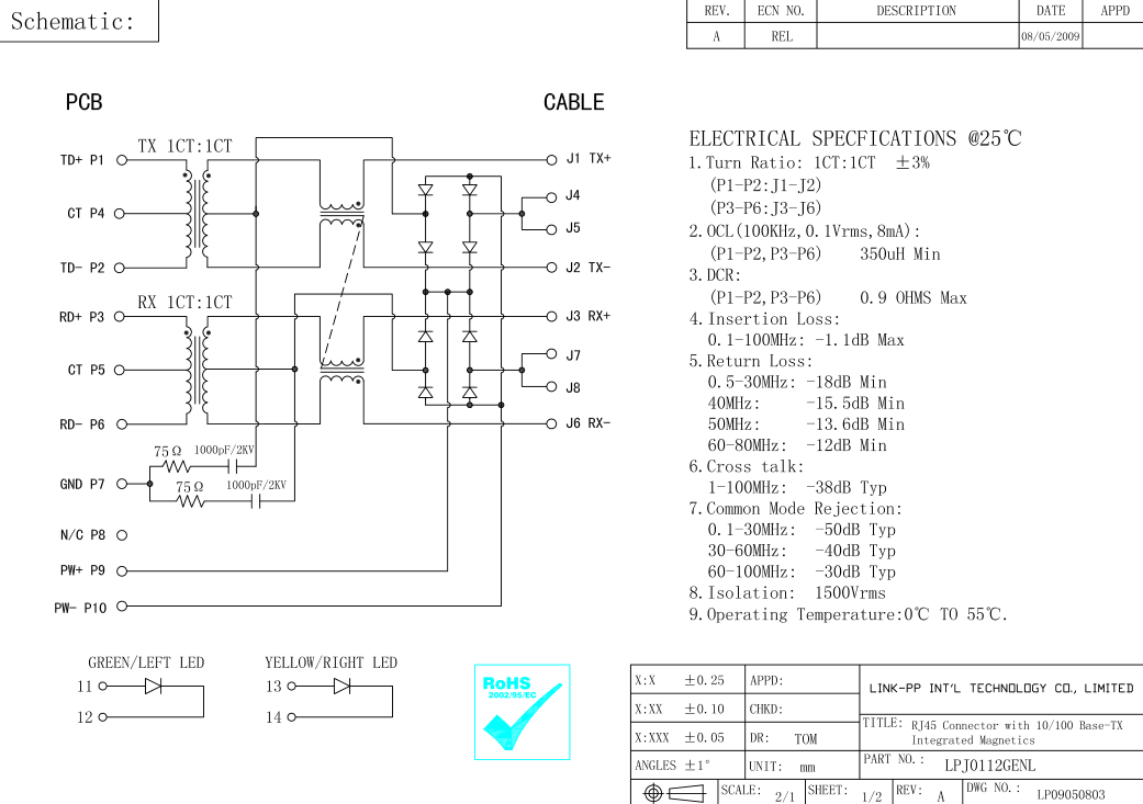| Magnetics Speed | Magnetics 10/100Mbps Or 1000Mbps |